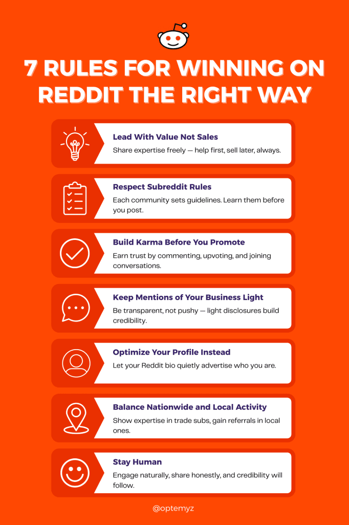 These aren’t just guidelines — they’re the difference between building trust and getting roasted as spam. Here’s how to use Reddit for business the right way: